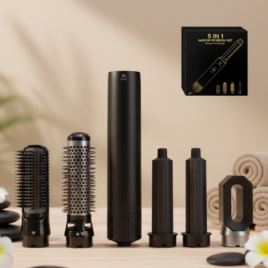 Transform your hair routine with one powerful styling tool. This 5-in-1 hair dryer brush set lets you dry, curl, smooth, volumize, and style with ease. Featuring interchangeable attachments and even heat distribution, it delivers salon-quality results while protecting your hair from heat damage. Perfect for all hair types and everyday styling.